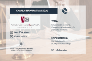 El próximo lunes 27 de octubre, de 15:00 a 16:00 hs, se llevará a cabo una nueva Charla Informativa Legal organizada por CERSAT y dictada